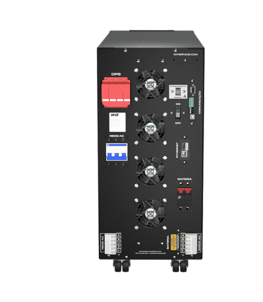 O Nobreak NHS EXPERT ONLINE TRIFÁSICO GIII 15000 faz parte da Linha NHS TRIFÁSICO. Essa Linha abrange modelos 10 kVA, 15 kVA e 20 kVA, para a proteção de sistemas complexos de energia que necessitam de maior potência e desempenho. Conta com uma tela touchscreen de 3,5” e software próprio para configuração e monitoramento. É ideal para proteção de data centers, call centers e equipamentos de missão crítica. Esse modelo não possui tomadas, atende aplicações diversas (conexões de entrada e saída com borneira) com variação em duas versões, sendo 220V ou 380V.